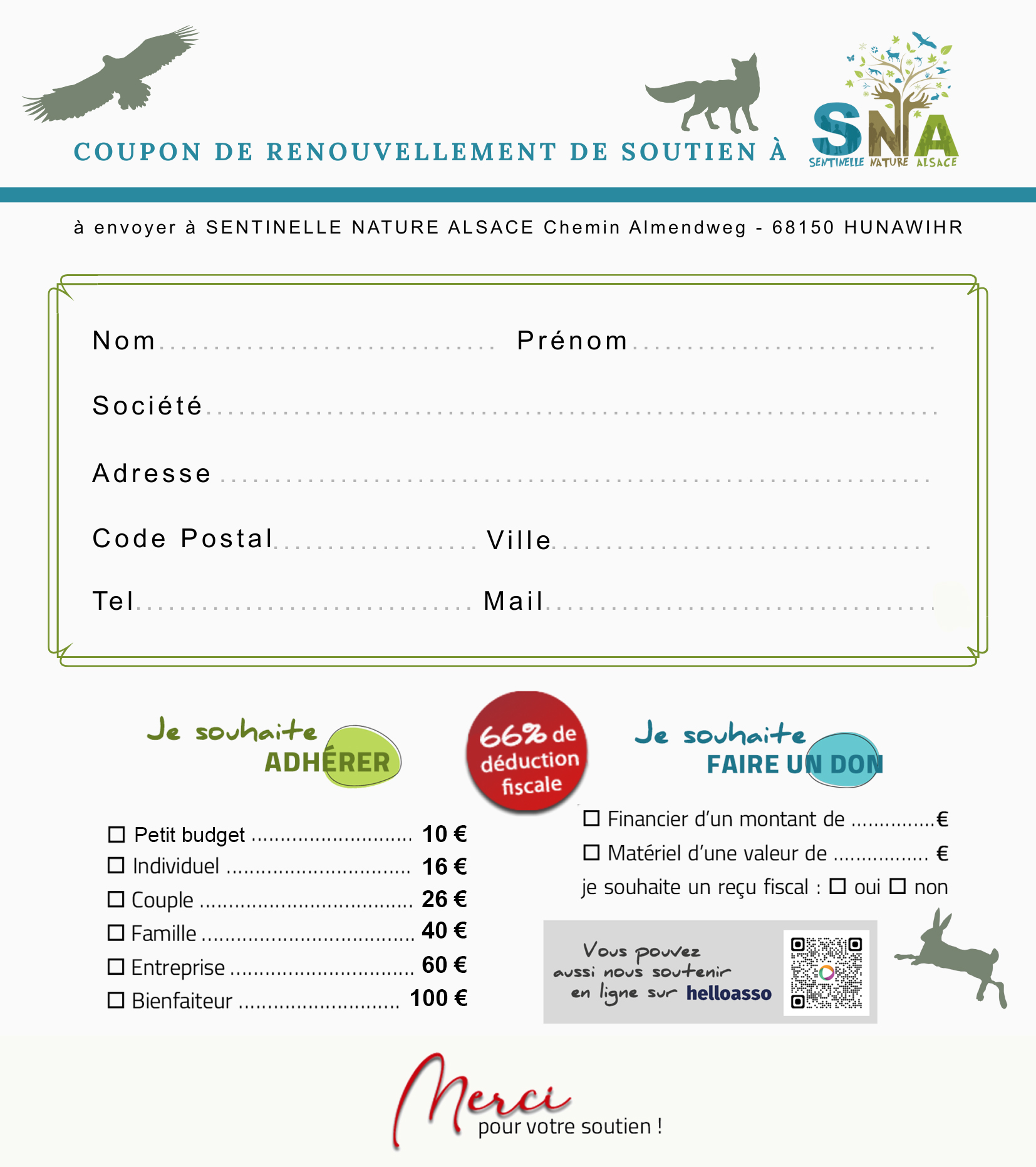 ♥ Faites un don unique ou mensuel grâce au portail de don HelloAsso, par carte bancaire.